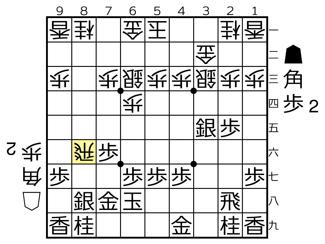 本譜は▲8八角としましたが、△8七歩が痛打となり島九段が押し切りました。