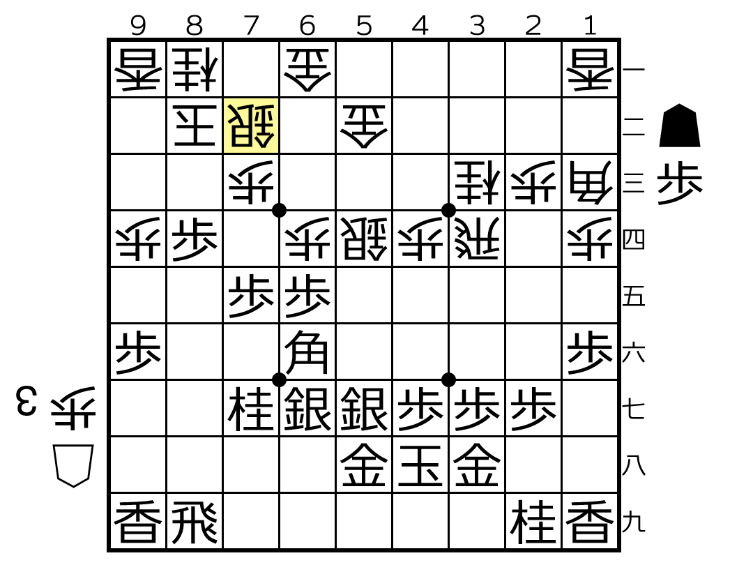▲7九歩が飛車が詰んでしまうのが痛く、先手が再逆転に成功。