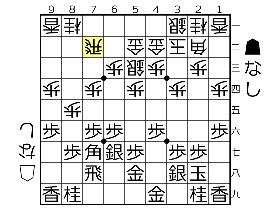 上図は金取りがかかっていますが、▲7七角が機敏な一手でした。