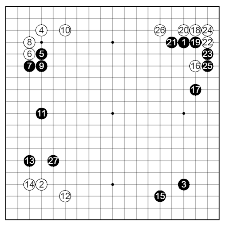黒17は白石への響きが悪いため、白18から攻められる展開になってしまいどうだったか。