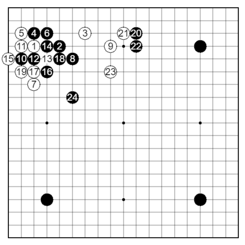 白3に対して早くも悩みましたが、黒14までわかりやすい打ち方を採用しました。