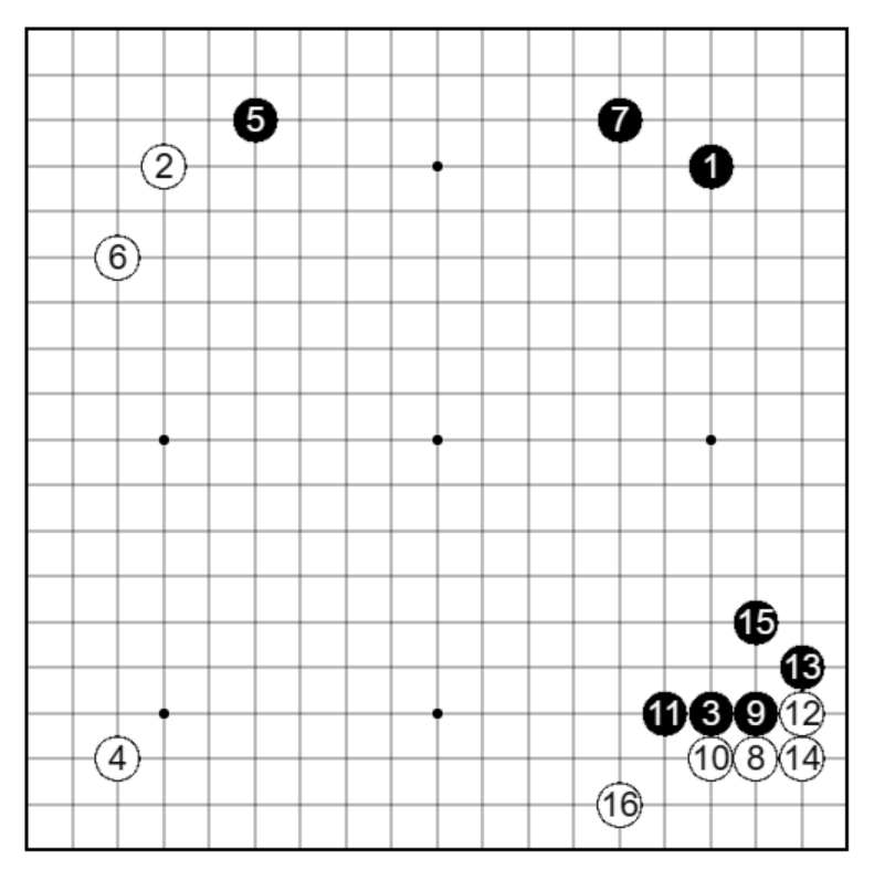 黒15は左辺で模様を作られるのを牽制しました。