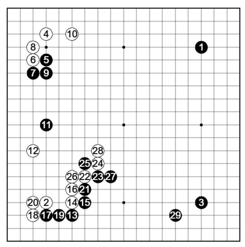 黒15のカカリに対し、あっさり左下隅を生かしてくれたのは意外でした。