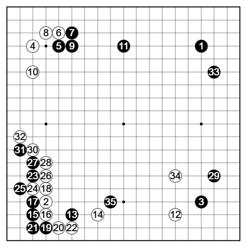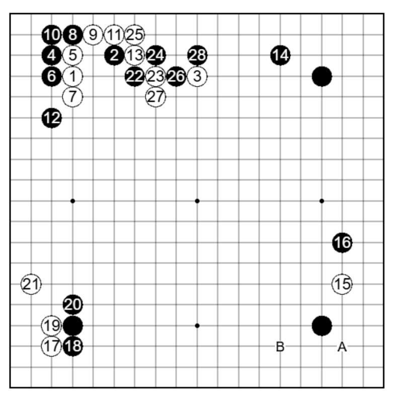 黒11に対しては13と頭を出す手を予想していましたが、白12は意表を突かれました。