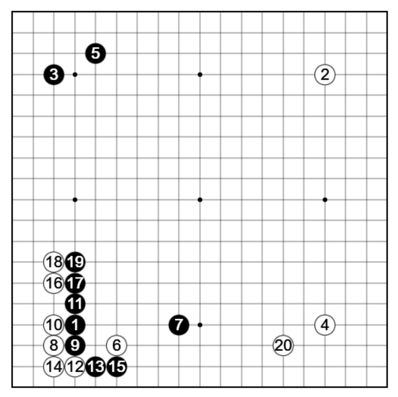 本譜は激戦にこそなったものの、最後は下辺一帯の白が取られる筋をうっかりしてしまい負けとなりました。