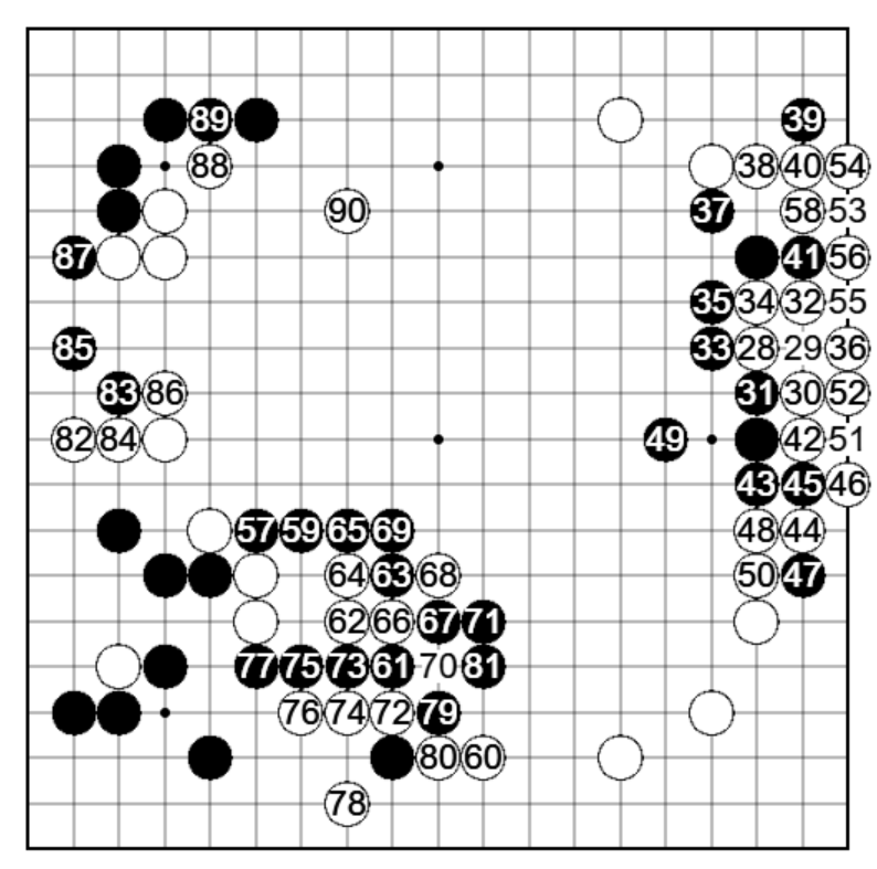 先にミスが出てしまったのはこちらで、白67が大悪手。黒68で左下を取られてしまいました。