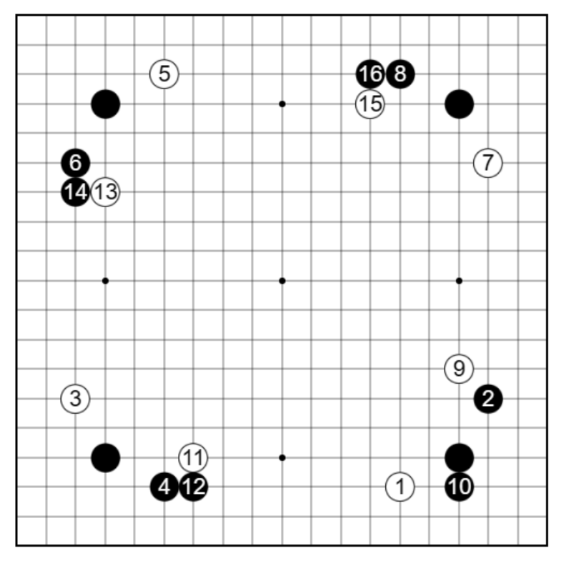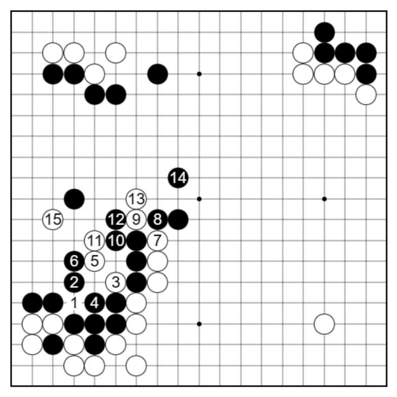 黒5~黒15まで、よくある二段バネの定石が進行。