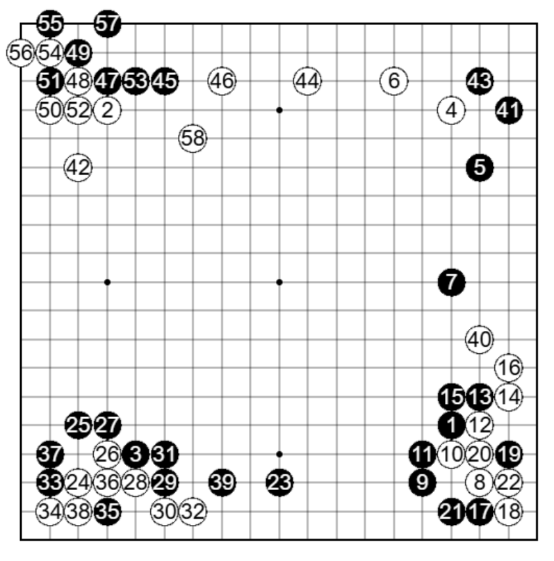 黒31まで3隅で定石の進行。