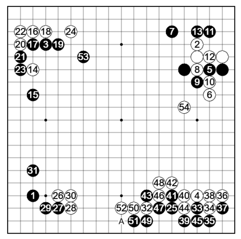 白38まで右下、左下で定石の進行に。