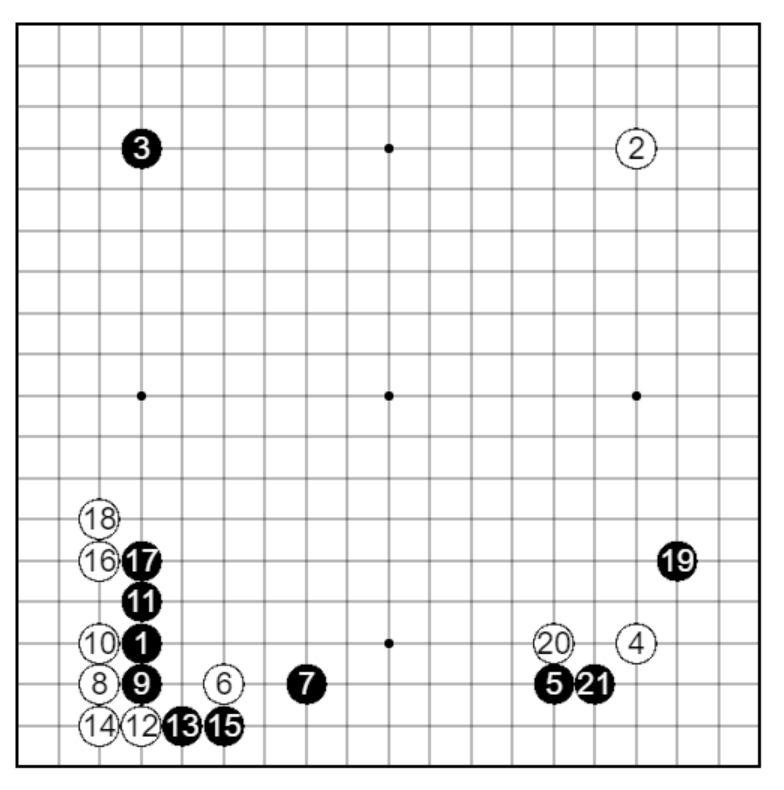 最終的には大差の碁が多かったですが、中盤に弱い石を作って危なくしてしまう局面がいくつもあったためその点が課題に感じました。