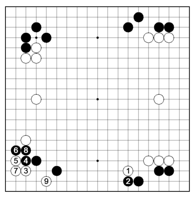 黒49と受けさせてからツケ二段を決行することにより、黒53が堅い手というよりは小さいところに手がいっているというのが白の主張となります。