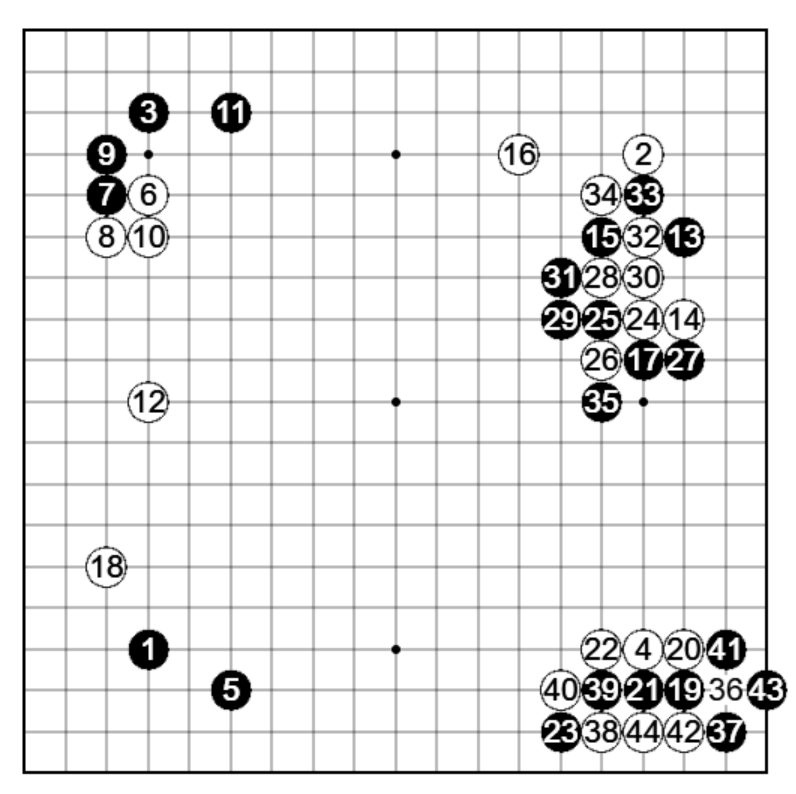 右上白41では44と立つのが第一感でしたが、戦いの採算が持てず断念しました。