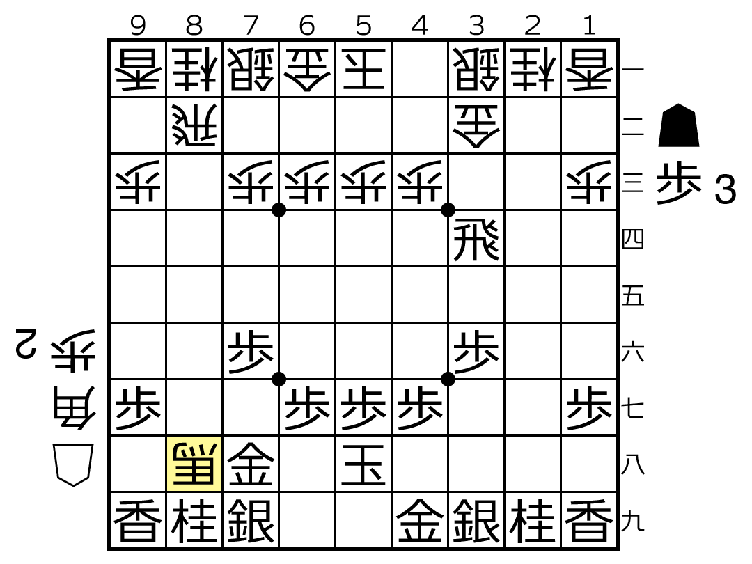 ▲8三歩 △9四角 ▲7六歩 △同 角