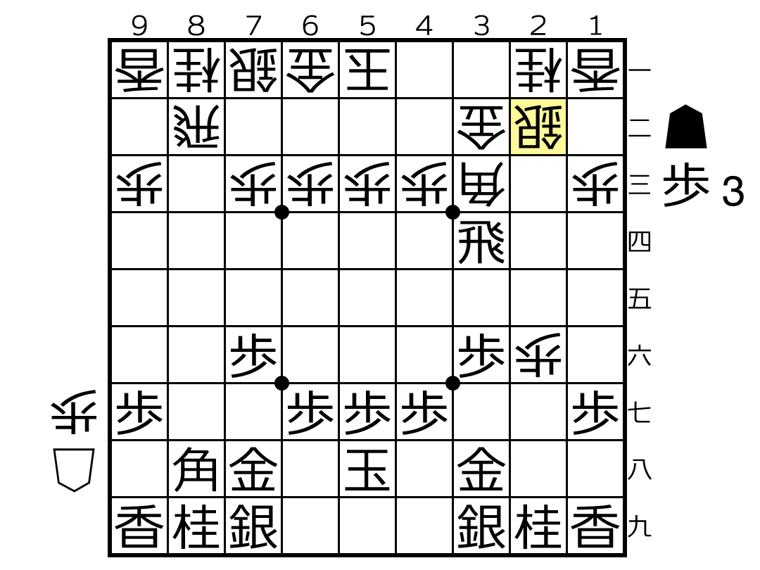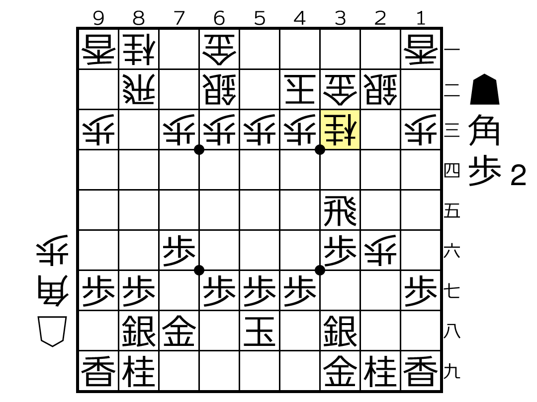 ▲2五飛 △3三桂 ▲2四飛 △8四飛