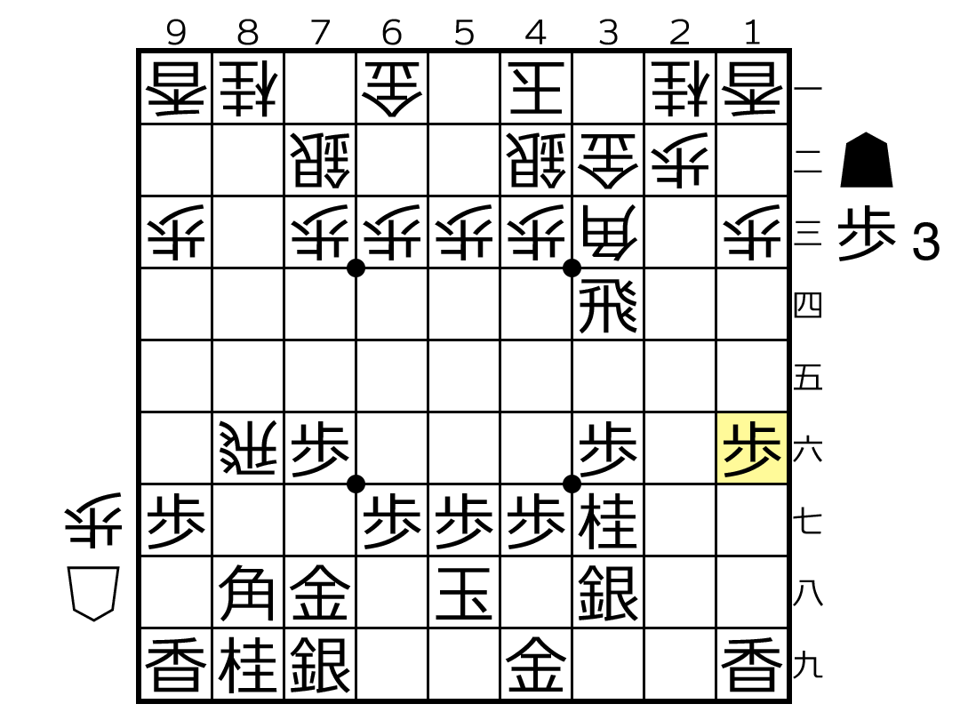 ▲1六歩△8四飛▲1五歩△6五歩
