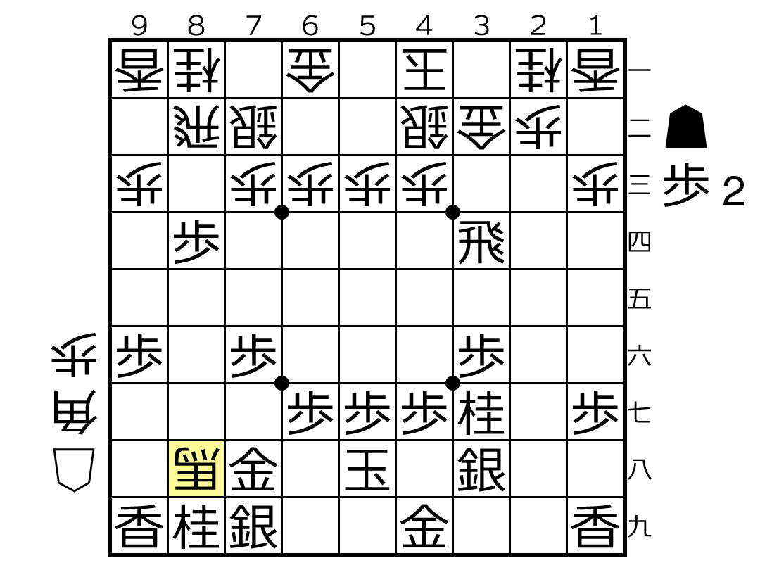 △3三桂▲6五桂△3四歩▲5三桂右不成