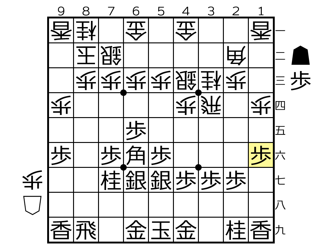 △2六歩▲同 歩  △同 飛▲2七歩