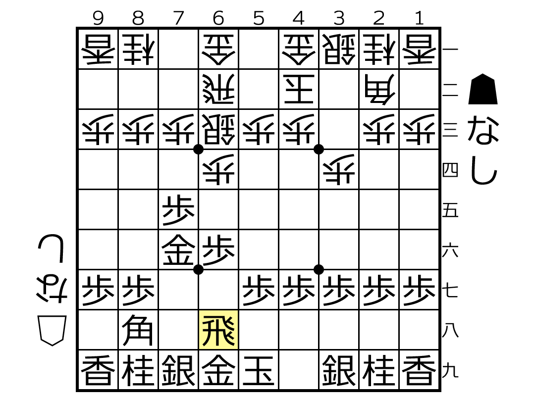 △8一飛 ▲5九飛△1三角 ▲6八角