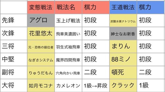 先手:まりん 初段(王道戦法チーム三将)