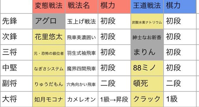 後手:紳士なお新香 初段(王道戦法チーム次鋒)