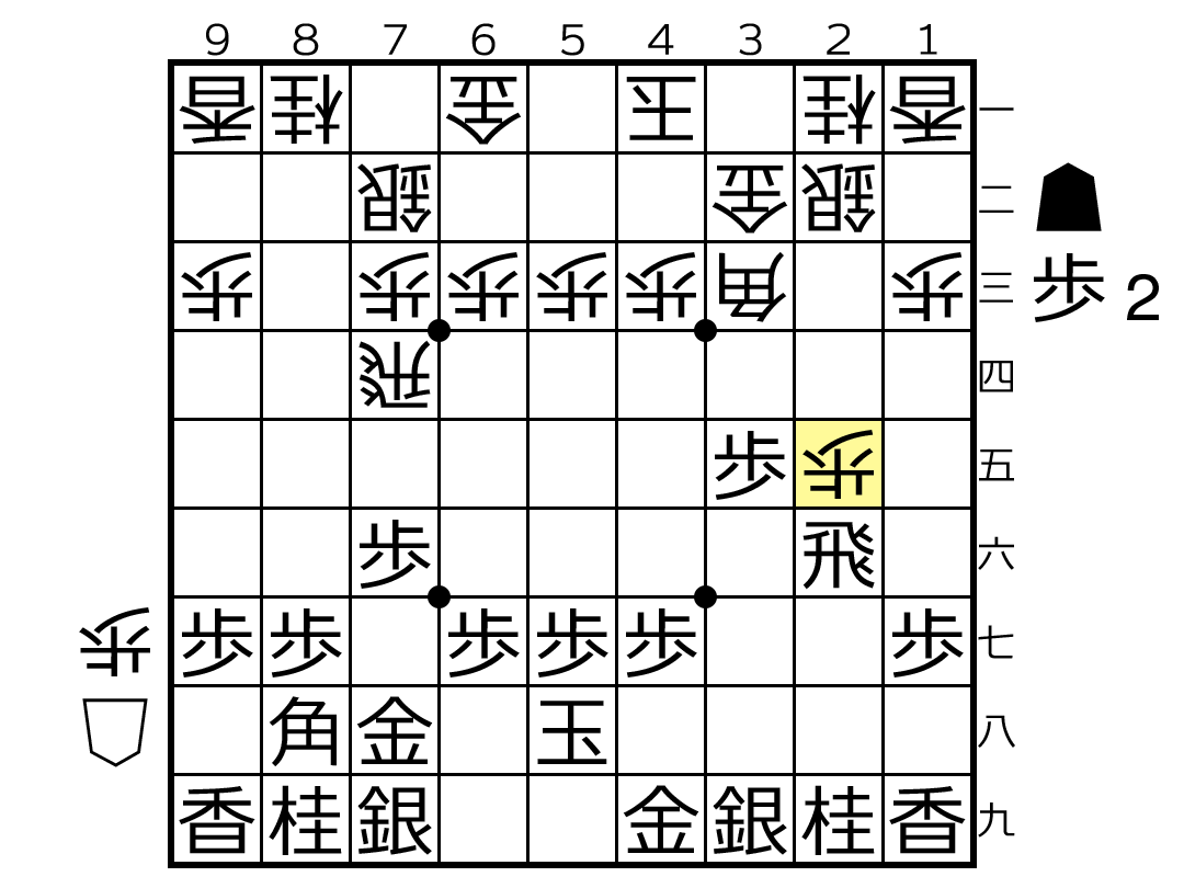 先手は5筋、8筋の歩を持ち歩にして戦機を待ちます。