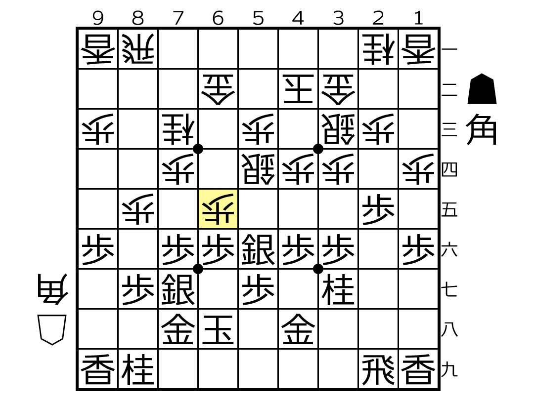 ▲4六角 △2八銀打 ▲9一角成 △5七香