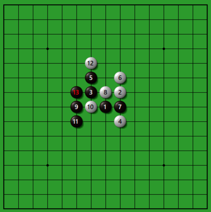 黒はまず13とナナメに三を作り白の態度を聞きます。