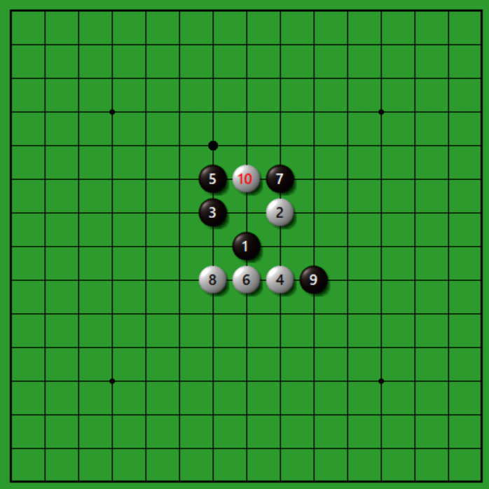 また、参考図2と別の四を止める手も考えられますが、これも黒勝ちとなります。