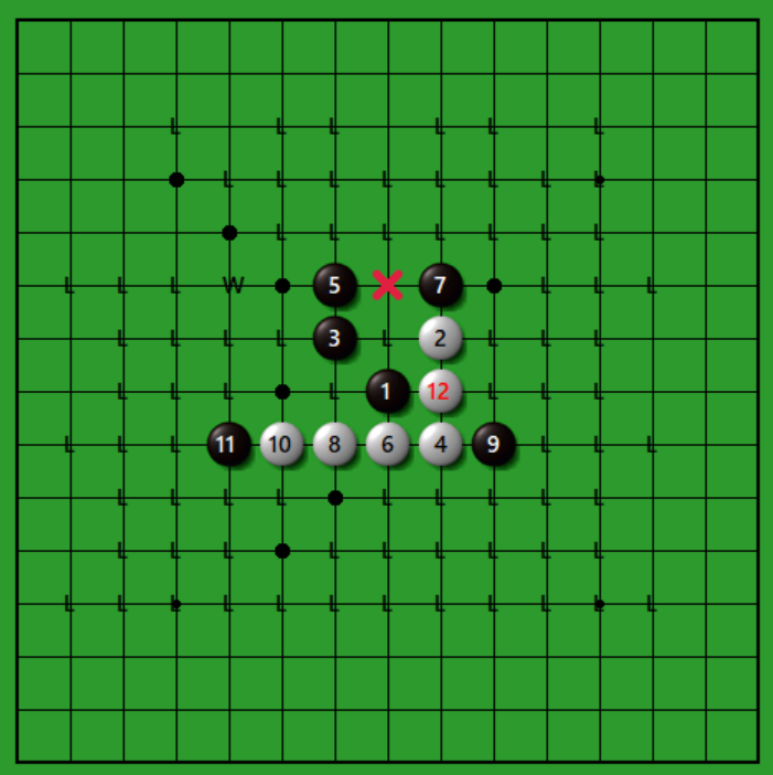 白20と単に三を止める手には黒21~23の3手で黒四三勝ちとなります。