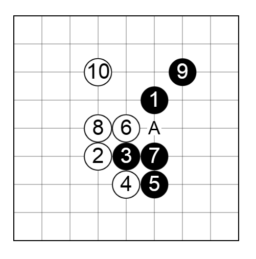 黒5までが「ブラックブーメラン」と呼ばれる戦法で、星の定石で最も多く打たれる形となります。