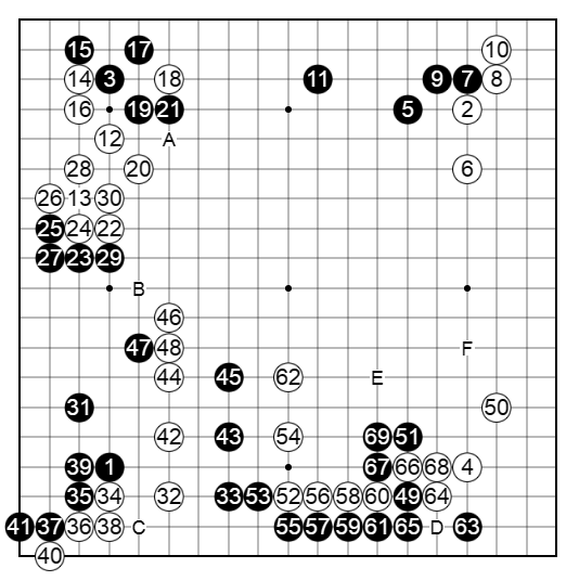 黒が21、23と取りにいく間に白は下辺を豊かにして十分。