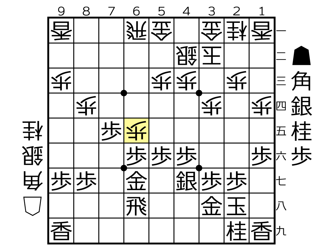 ▲4七金 △8五桂 ▲8八角 △6五歩