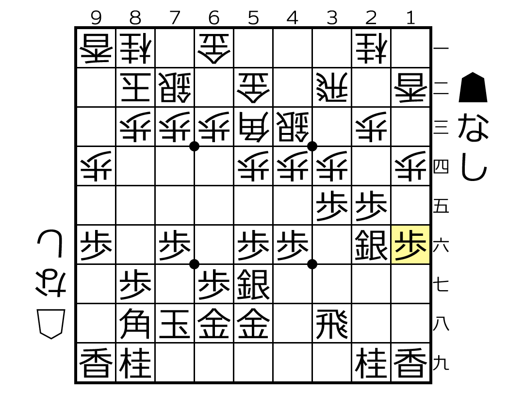 上図は駒組みの段階で△1四歩と工夫したところ。