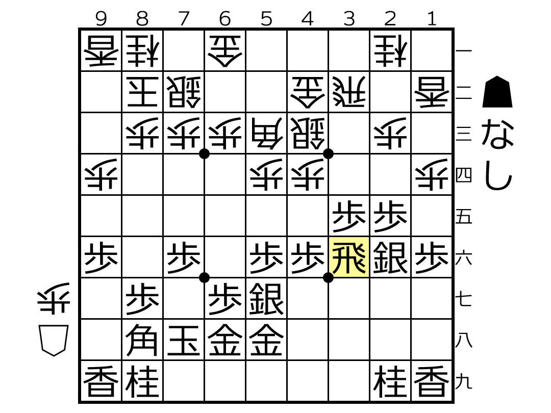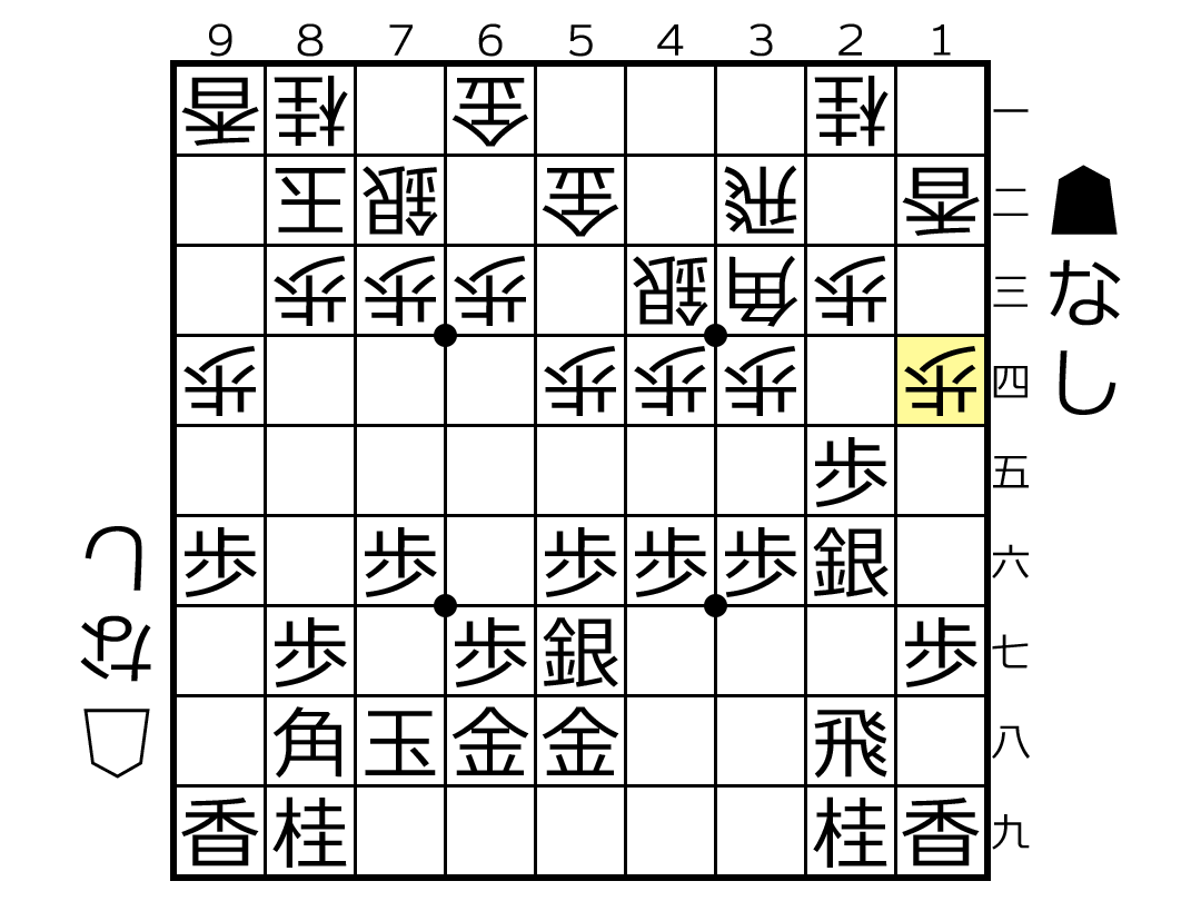 上図は▲3四歩に代えて▲1六歩として力をためたところ。