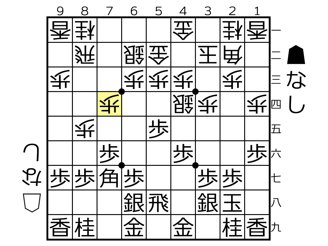 先手が四間飛車から7筋に位を取りにきた手に対し、真っ向から反発したところ。
