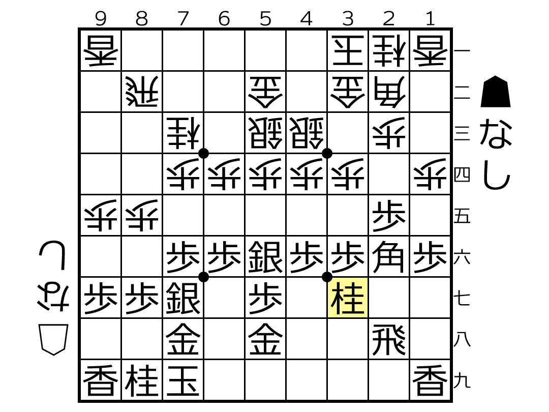 ▲7七桂と桂馬をぶつけてきたところ。
