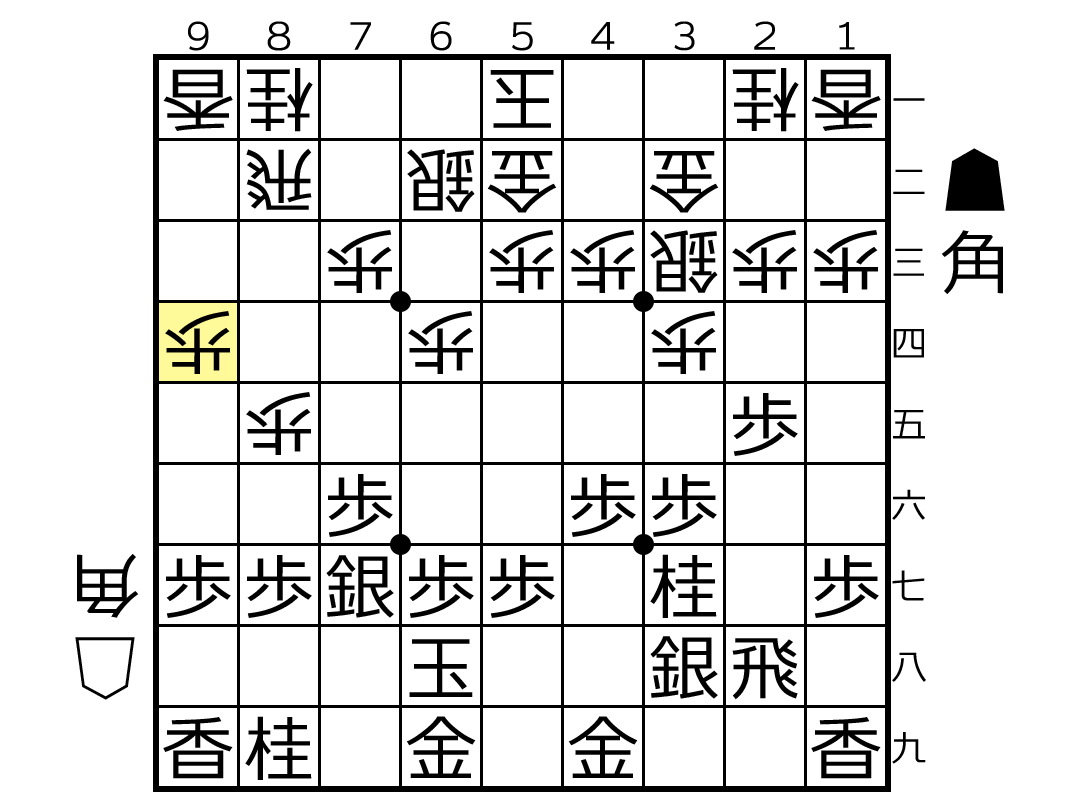 △5五角成 ▲6六角 △4五馬▲3七桂