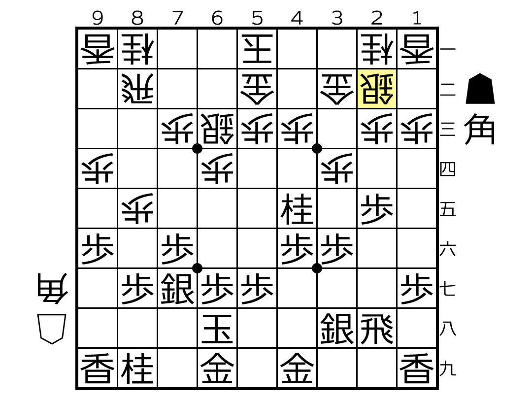 ▲7八金 △6五桂 ▲2五飛 △3四銀