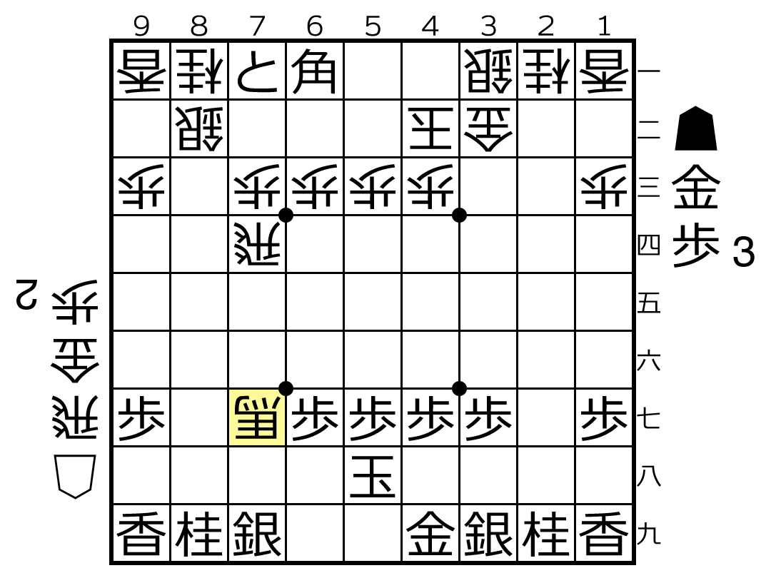 ▲7四同飛△同歩▲8三歩が先手としては有力な攻め筋です。