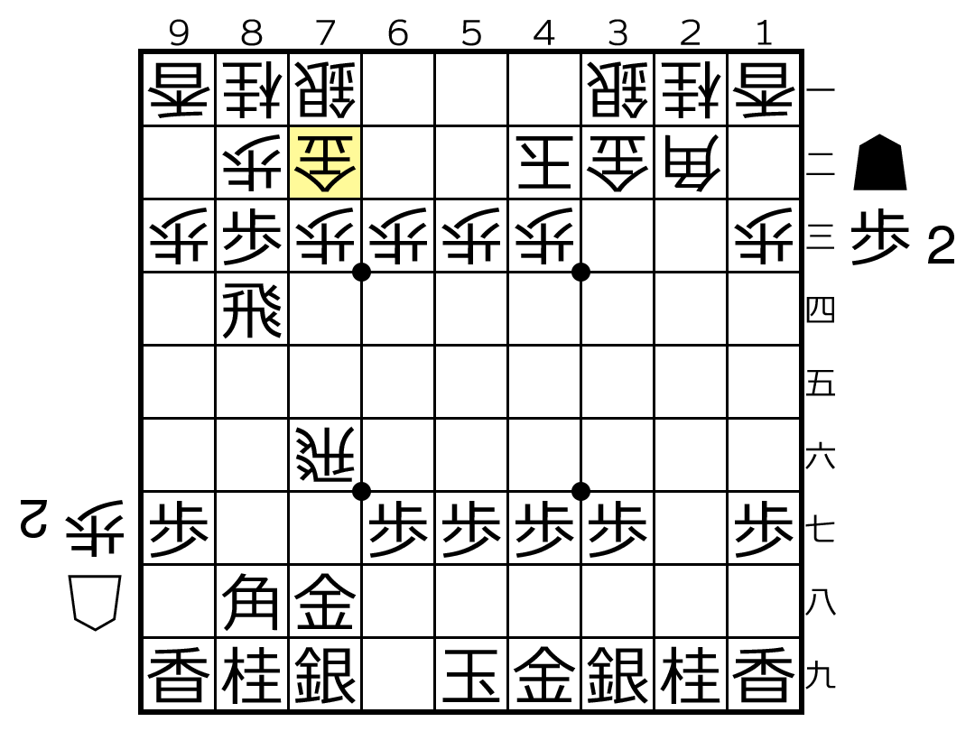 △2七飛▲2二銀△4二玉▲2八歩