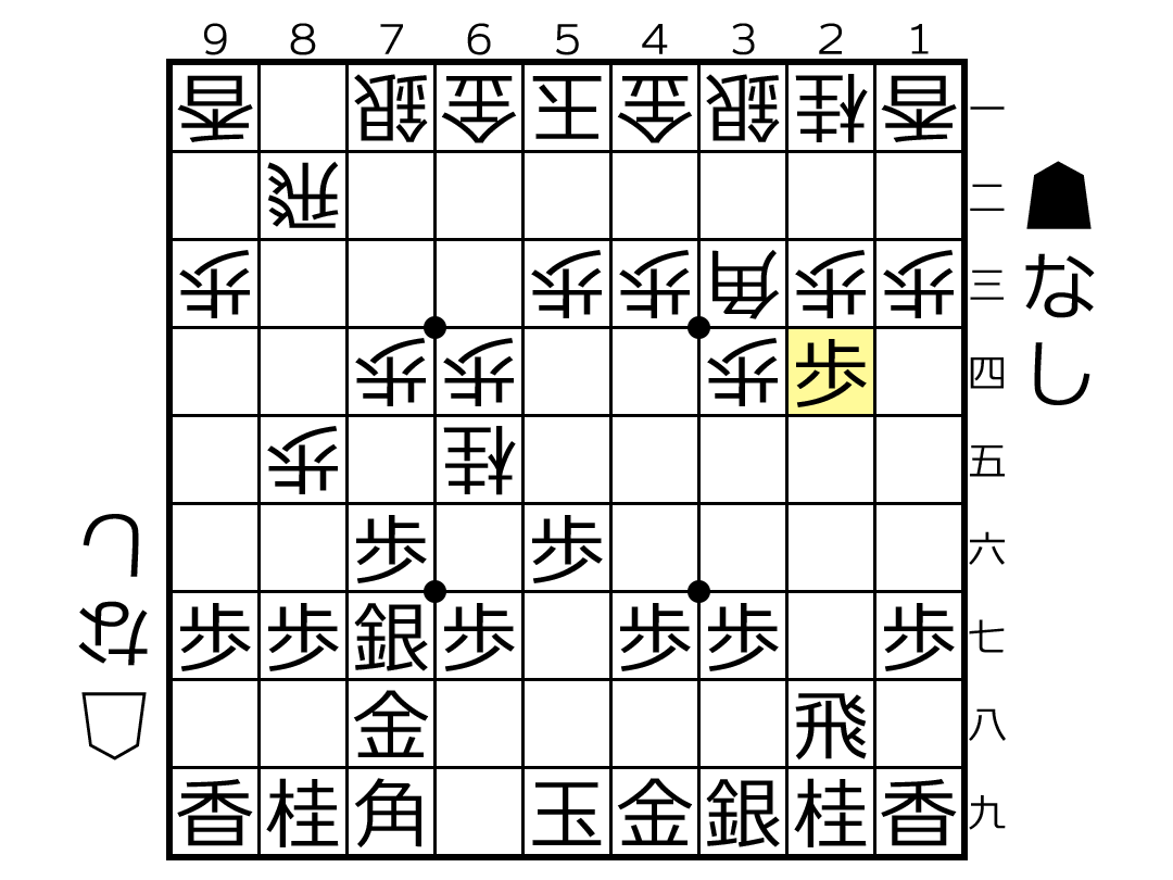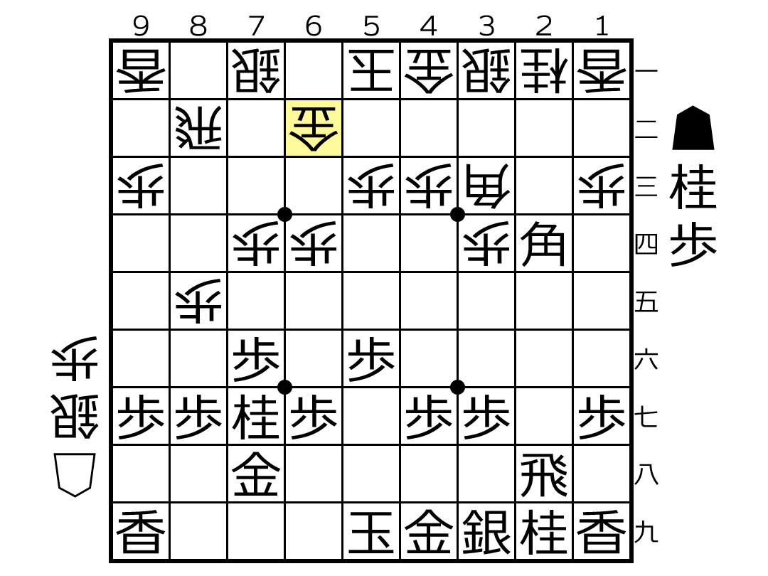 上図は後手が7七で銀桂交換した後に△2四歩と手を戻したところ。