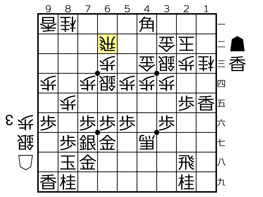 後手の△6九角と似た意味で、6三への角成りと後手玉への攻めをにらんだ急所の手となります。