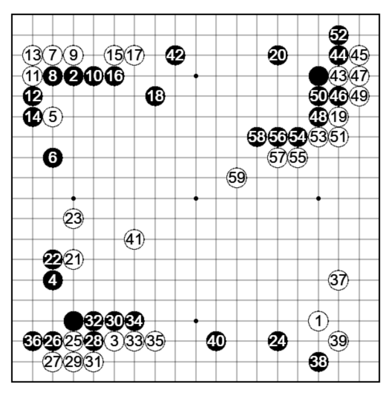 黒31以降は54と黒コスミツケで左辺黒を安定させるところだったかもしれません。