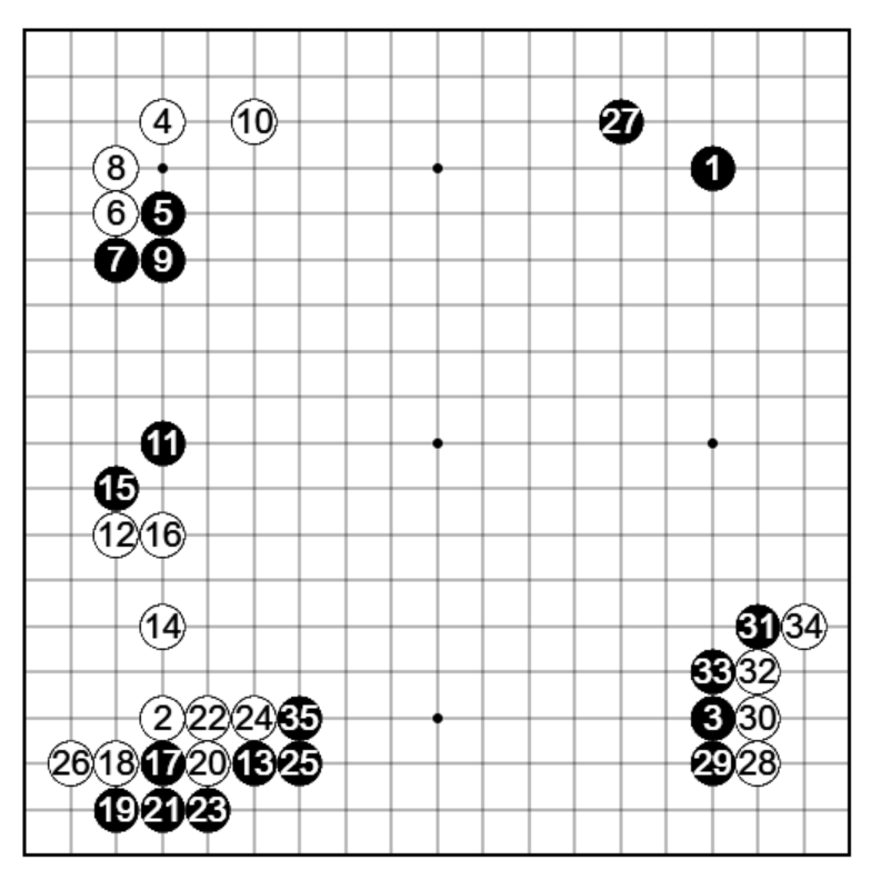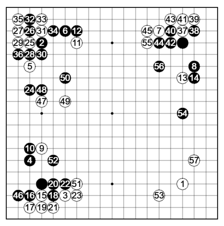 2025【振り返り】カッパ杯(令和7年3月度)に参加してきましたー3局目S(陽)二段戦 囲碁実戦振り返り X Facebook はてブ LINE Pinterest コピー 2025.03.25 今回は、令和7年3月22日に岩手囲碁センターで行われたカッパ杯囲碁大会の3局目の振り返りをしていきます。黒番:S 二段白番:つなよし(3子局) 目次 第1図第2図 第1図 左上は前局でも打った定型。白35では部分的には参考図が優りますか。しかし、右辺をまとめきる自信はありませんね… 第2図 黒38はハイリスク。白39~41もリスクの高い手でしたが、白51まで進めば顔が立ちました。本譜でもまだ黒が置石ぶんのよさはありましたが、白の模様を生かして大きな地を作って勝つことができました。