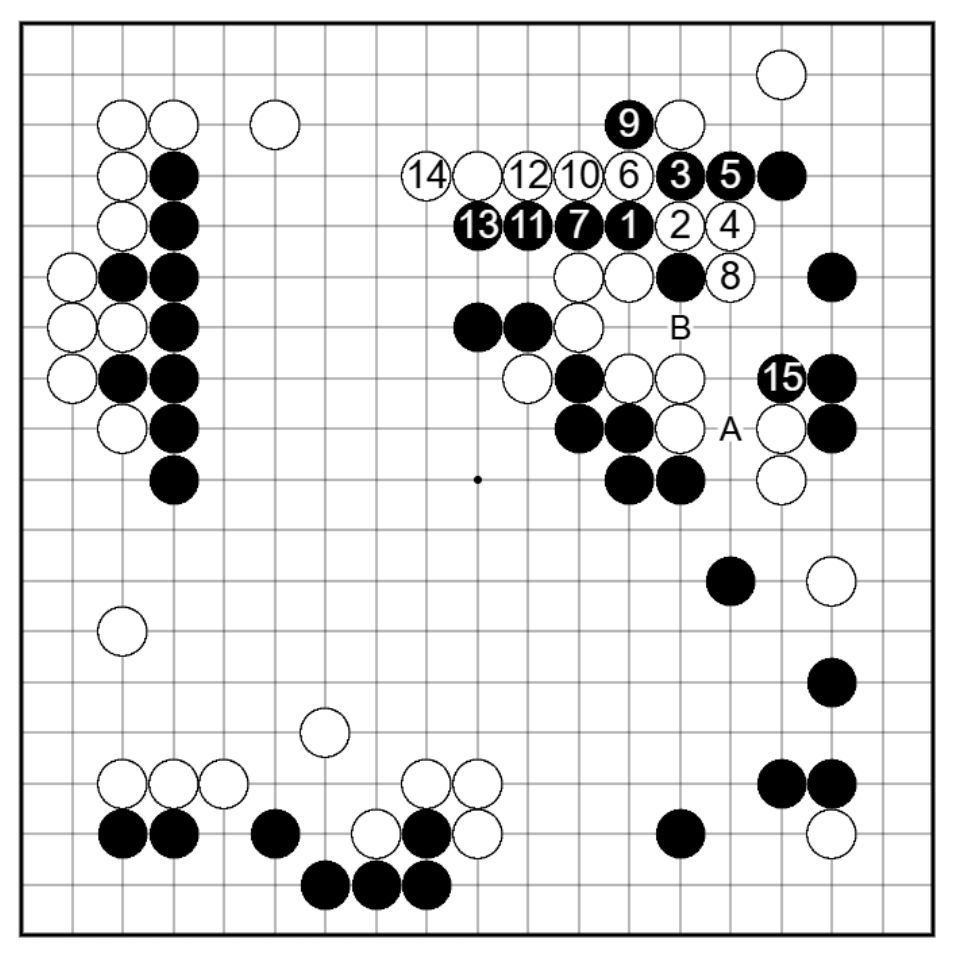 戻って黒81で参考図のように打てば、生きられたとしても黒の外勢が悪くない形でした。