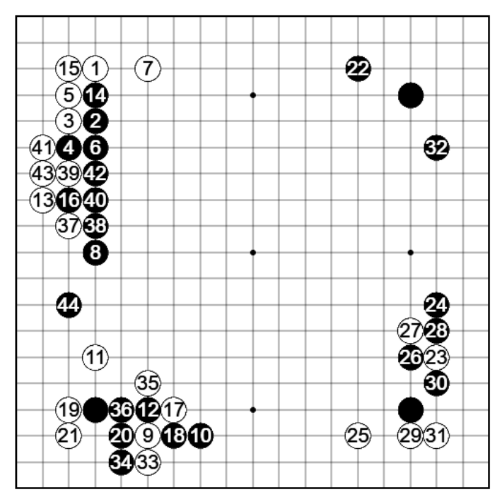 白36~40と利かすことができれば白有利となり、以降も緩まず勝つことができました。