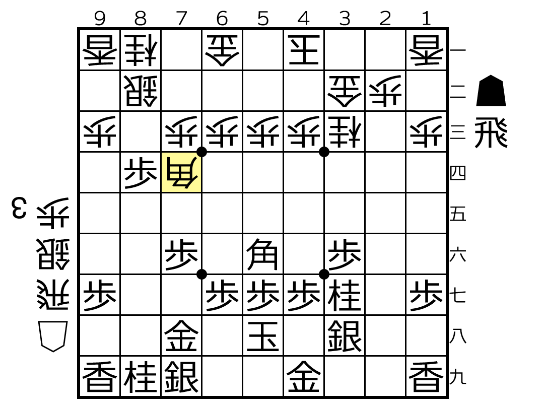 △3三桂 ▲6三角成 △5二銀 ▲3三香成