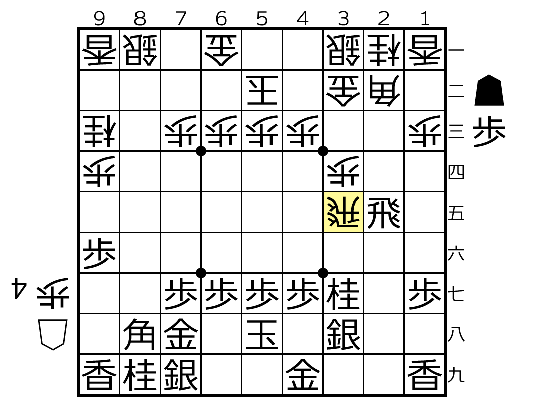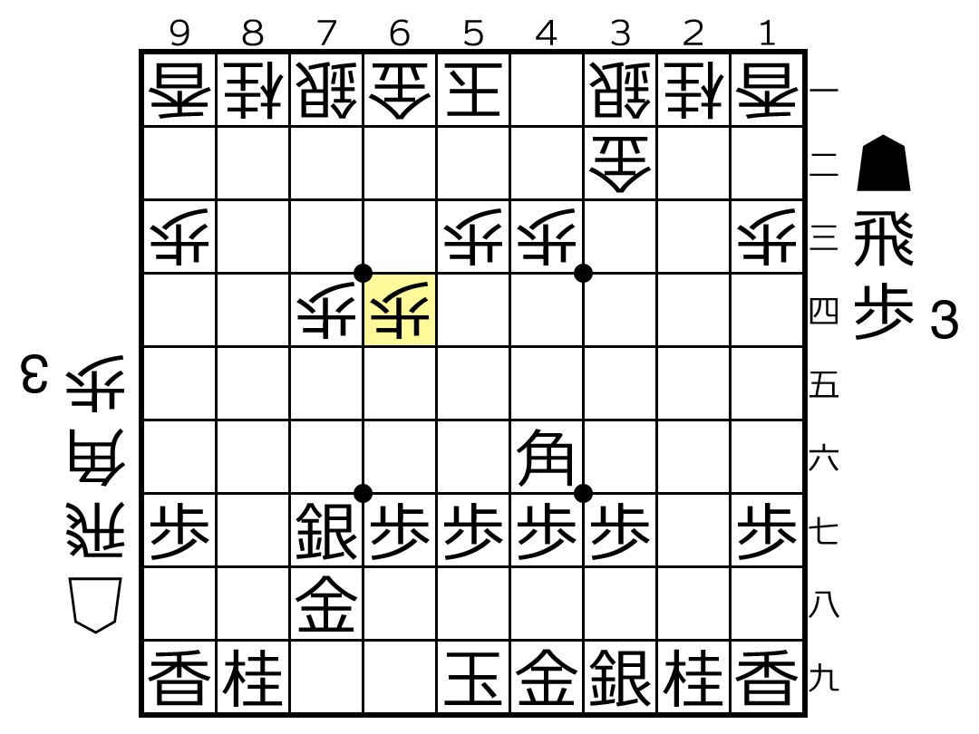 ▲3九金△3三桂▲7五飛△2六飛