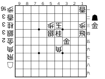 詰将棋20260119 詰将棋 X Facebook はてブ LINE Pinterest コピー 2026.01.19 目次 問題図解答 問題図 解答 ▲3三金 △同 玉 ▲3四飛 △2三玉 ▲3二飛成 △1四玉▲3四龍 △1五玉 ▲2五龍まで9手詰